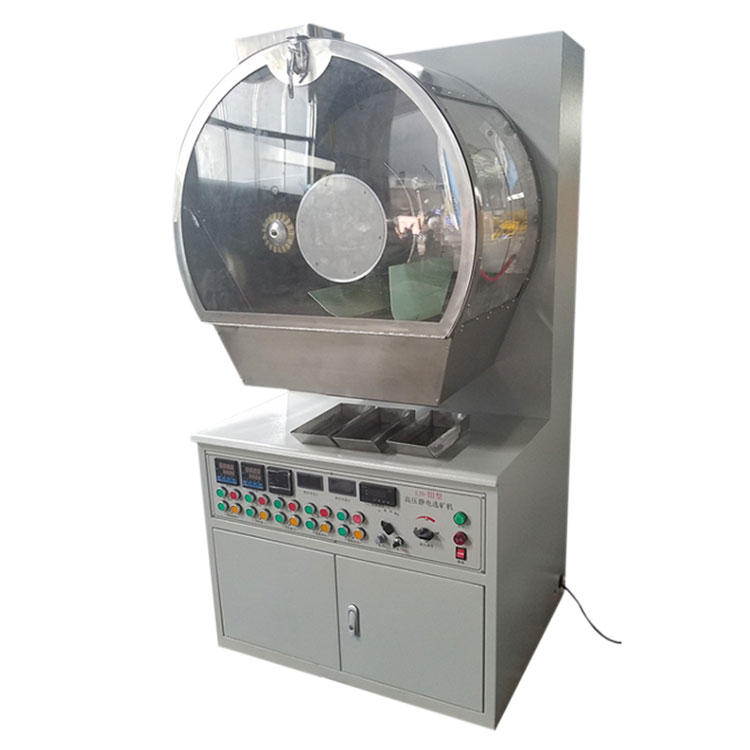 According to the special needs of experimental research, many parameters can be adjusted and compared during the separation process. This machine can meet the requirements of experimental research, is easy to operate, and has attractive appearance. The bearing of the drum adopts cantilever axis structure. Its outside is installed a safety protection cover made of organic glass. The high voltage source and electrical parts are in the lower part of the machine. See the structure diagram for detailed structure.